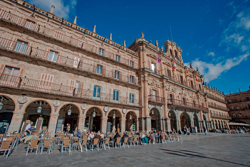 Una historia muy marcada por su Universidad, cuya fachada es una de las paradas obligatorias al visitar la ciudad. Esta fachada del siglo XVI perteneciente al estilo plateresco, muy icónico de la ciudad, y que cuenta con una gran ornamentación que deleita al visitante. En esta multitud de monumentos, nos encontramos con dos catedrales: la Vieja del siglo XII de estilo románico y la Nueva tardo gótica del Siglo XVI. Otra de las paradas obligatorias de la ciudad es la Plaza Mayor que destaca por el estilo churrigueresco propio de esta ciudad. También es interesante visitar el colegio Fonseca, la iglesia de la Clerecía, el palacio gótico de la Casa de las Conchas y la modernista Casa Lis.