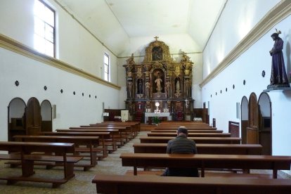 La iglesia de Los Franciscanos, situada en plena Judería de Segovia, en una calle estrecha por la que antes de la pandemia pasaban miles de turistas y ahora permanece vacía, con un aspecto insólito, el grupo de Adoración al Santísimo permanece acompañando la custodia entre las 8 y las 20 horas.