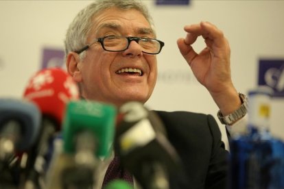 Ángel María Villar, durante su comparenencia ante los periodistas en un hotel de Madrid /JOSÉ LUIS ROCA (FUENTE)