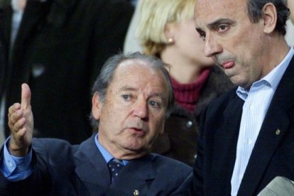 Josep Lluís Núñez y su inseparable vicepresidente Joan Gaspart. / REUTERS / GUSTAU NACARINO