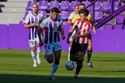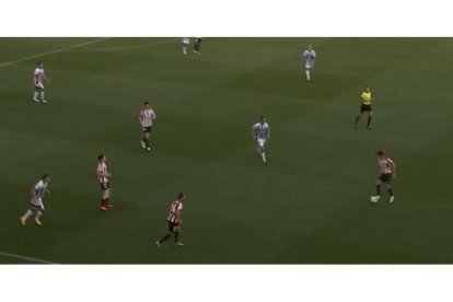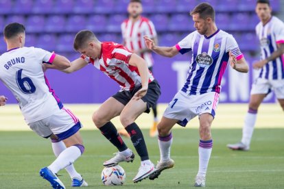 Minuto 40. REAL VALLADOLID-ATHLETIC (0-0). La ocasión le ha venido bien al Pucela que parece que se lanza un poco más al ataque,