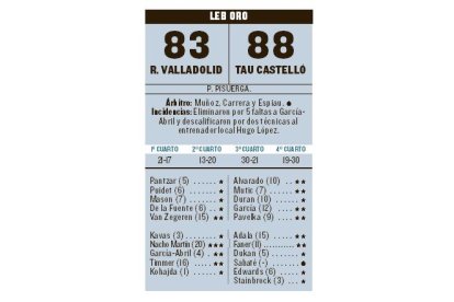 La descalificación de Hugo López en el tercer cuarto deja al Clínica Sur Aspasia a merced del Tau Castelló, que le acaba noqueando / Los vallisoletanos vuelven a complicarse su acceso a los playoffs