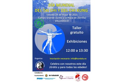 Valladolid no pudo sumarse el pasado mes a las celebraciones, pero lo celebrará este próximo sábado día 29 de mayo en el Campo Grande (junto a la Plaza de Zorrilla) a las 12:00h. Desde el departamento de Taichi de la Federación, invitan a la ciudadanía de Valladolid a participar en este evento (clase gratuita y exhibiciones) organizado por uno de su clubes recién afiliados, el Club Kundaly que, desde hace mucho tiempo, son el mayor referente del Taiji en la ciudad de Valladolid.