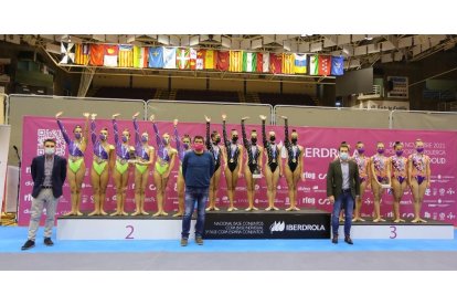 Pero es que las noticias positivas no dejaron de llegar, ya que a última hora de la noche también el conjunto alevín fue capaz de subirse al cajón con 14.900 puntos, seguido de Viravolta Santiago de Galicia, con 14.750 y de Batistana Tenerife M, con 13.550.