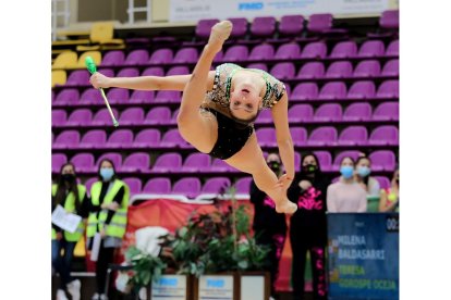 Por su parte, Milena Baldasarri, la gimnasta olímpica italiana y medalla de plata en el mundial de 2018, ahora en las filas del Club Ritmo León, no quiso quedarse atrás y sumó su importante contribución a la causa con 25.150 puntos que la llevaron a ser primera en aro y también en mazas con 24.950. Dos triunfos para cada una de ellas que se tradujeron en un título en la Liga final del Club Ritmo con 129.050 puntos, por delante de Gimnática Consell (Baleares) con 119.400 y de Club Mabel Benicarló, con 117.600.