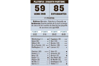 El extasiado UEMCReal Valladolid sucumbe ante la lógica y calidad de un imperial Estudiantes en la cuarta batalla de los playoffs para poner los cimientos del próximo proyecto