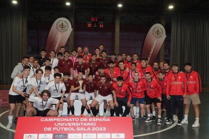 FÚTBOL SALA.- En la jornada final de fútbol sala y con el aliciente de la pista nueva de la Real Federación Española de Fútbol colocada sobre el parquet de Fuente la Mora y con la retransmisión en directo por streaming por el canal de la RFEF, la UCAM y la Universidad de Sevilla se coronaron como reyes universitarios de 2023.
