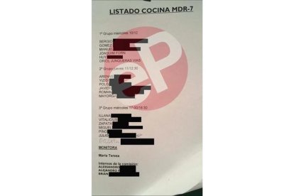 Como miembro de esa comisión, Alejandro F. figura en un aviso interno de la prisión al que ha tenido acceso EL PERIÓDICO. En el documento, una hoja de reparto de turnos para ayudar en la cocina, también aparecen Junqueras y Forn asignados al primer turno de trabajo.