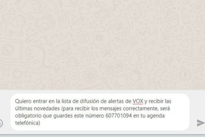 Una imagen promocional de la lista de difusión de Vox.-