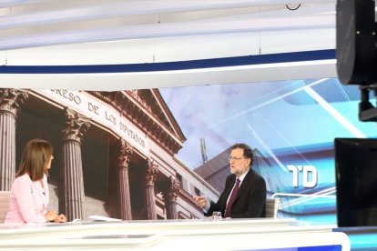 Ana Blanco, presentadora de informativos en TVE, en una entrevista con el presidente del Gobierno Mariano Rajoy / TVE