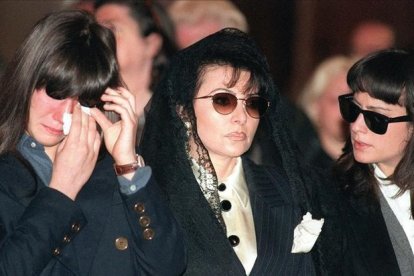 Patrizia Reggiani, con sus hijas, Allegra y Alessandra, en el año 1995, en el funeral de Maurizio.