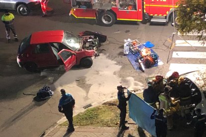 El suceso, del que aún se desconocen las causas y que se produjo tras la colisión frontolateral de un Peugeot 306 y un Seat Toledo, tuvo lugar sobre las 21.30 horas, momento en que los Bomberos recibieron el aviso del 112, al igual que la Policía Municipal, que rápidamente se desplazaba hasta el lugar con cinco dotaciones, a las que se sumaba un camión y un vehículo de bomberos y un ambulancia del Sacyl.