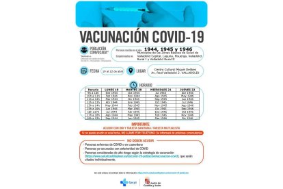 Como es habitual, y para evitar aglomeraciones, los ciudadanos deberán acudir ordenadamente al Centro Cultural Miguel Delibes siguiendo la planificación por mes y año de nacimiento que se indica en la imagen que acompaña a esta información.
