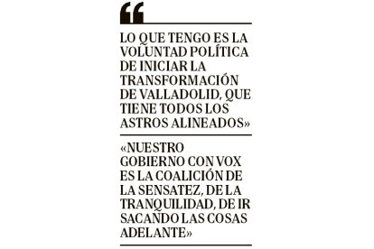 R .- Mire usted, si yo en algo creo, pienso y siento es en la capacidad que tienen todos los vecinos y todas las vecinas de Valladolid. Si yo en algo creo, es en Valladolid. Es que es verdad, tenemos muchos proyectos para seguir transformado e impulsado esta ciudad hacia un futuro muy próspero. Estamos en el momento, pero también necesitamos la participación de otras administraciones, como la autonómica y la central.