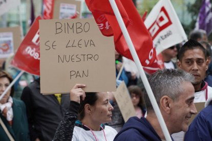 Cientos de personas participan en una manifestación en defensa de la actividad en la planta de Bimbo