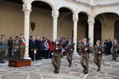 Este domingo día ocho de diciembre, se ha celebrado en el Palacio Real de Valladolid un acto en honor a la Inmaculada Concepción patrona de España. Realizado por la especialidad de Infantería del Cuerpo General del ET, de los Cuerpos Jurídico militar y Capellanes castrenses, ha sido presidido por el general César García del Castillo. Según se informa en una nota de prensa remitida a los medios, el acto militar en el Patio principal ha consistido en: