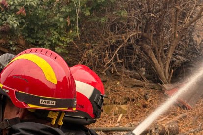 Los Bomberos de Valladolid regresan tras mejorar el incendio de Oencia en León