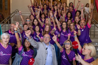 Las Vallkirias junto con el alcalde, Jesús Julio Carnero, antes de dar el pregón de las fiestas de Valladolid.